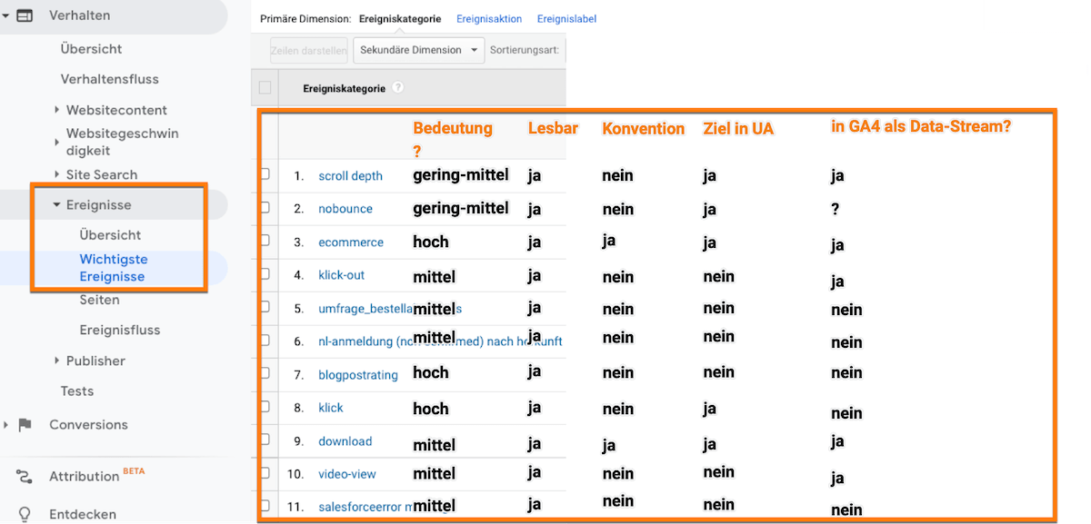 • Anpassungen: Welche Ereignisse und benutzerdefinierten Definitionen (Custom Dimension & Metrics) müssen wir und welche wollen wir migrieren?