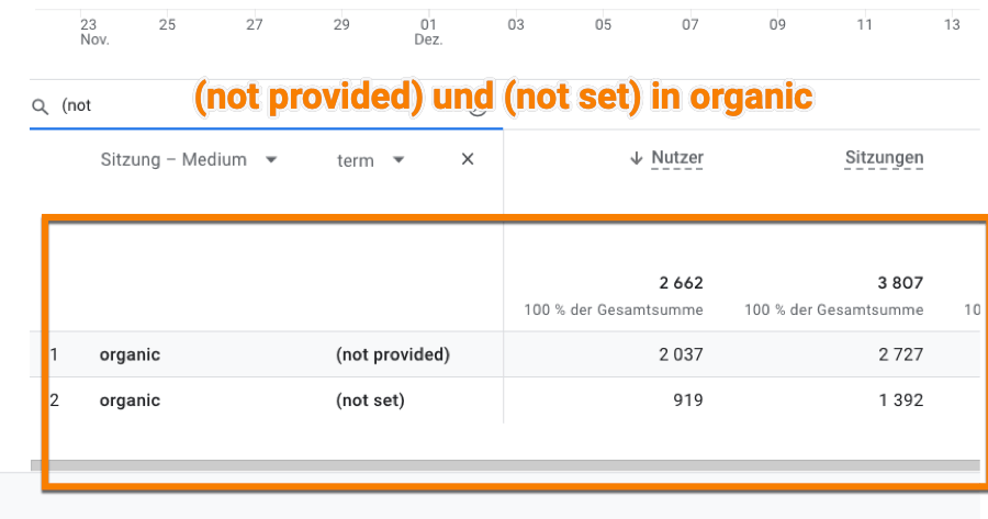 „(not set)“ in Akquisition -> Kampagnen -> Organische Keywords