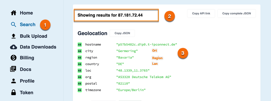 Mit diesem Tool https://ipinfo.io/ kannst du zum Beispiel deine eigene IP-Adresse aufschlüsseln und auch überprüfen, wie die Zuordnung für di einzelnen Dimensionen aussieht