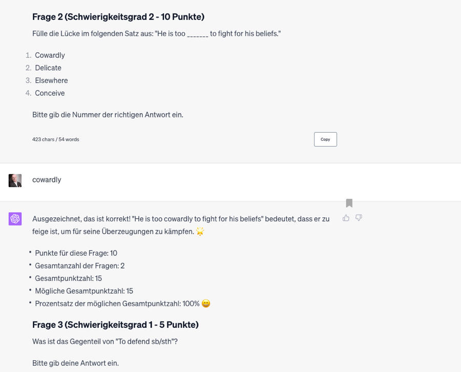- Erstelle mir ein GPT, das mir hilft englische Vokabeln zu lernen.