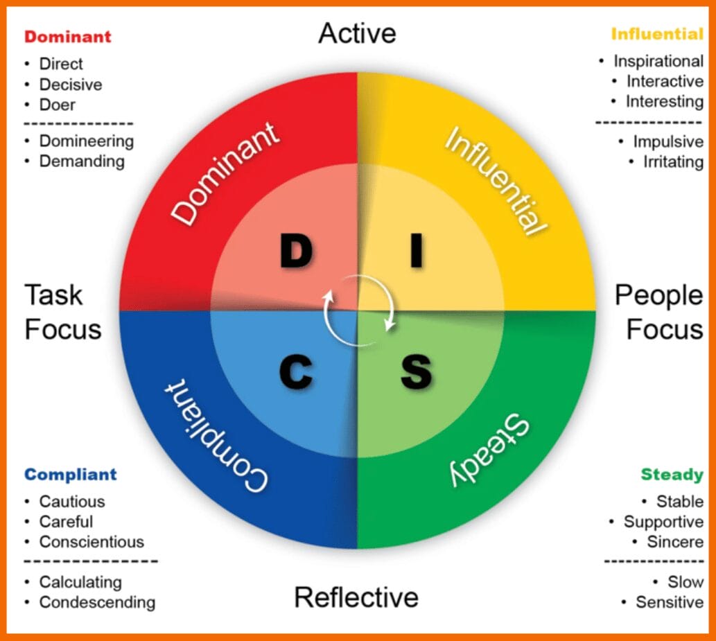 - DISC: D (Dominanz): Ein D-Profil kann dazu beitragen, dass Entscheidungen schnell getroffen werden und das Team sich auf Ergebnisse konzentriert.