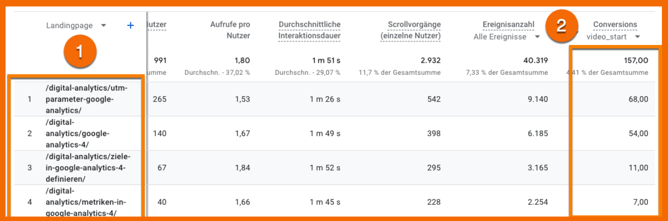 Bitte beachte, dass das Conversion-Tracking nicht rückwirkend funktioniert. Die Conversion-Ereignisse kannst du in verschiedenen Berichten deiner GA4-Benutzeroberfläche analysieren. Zum Beispiel: