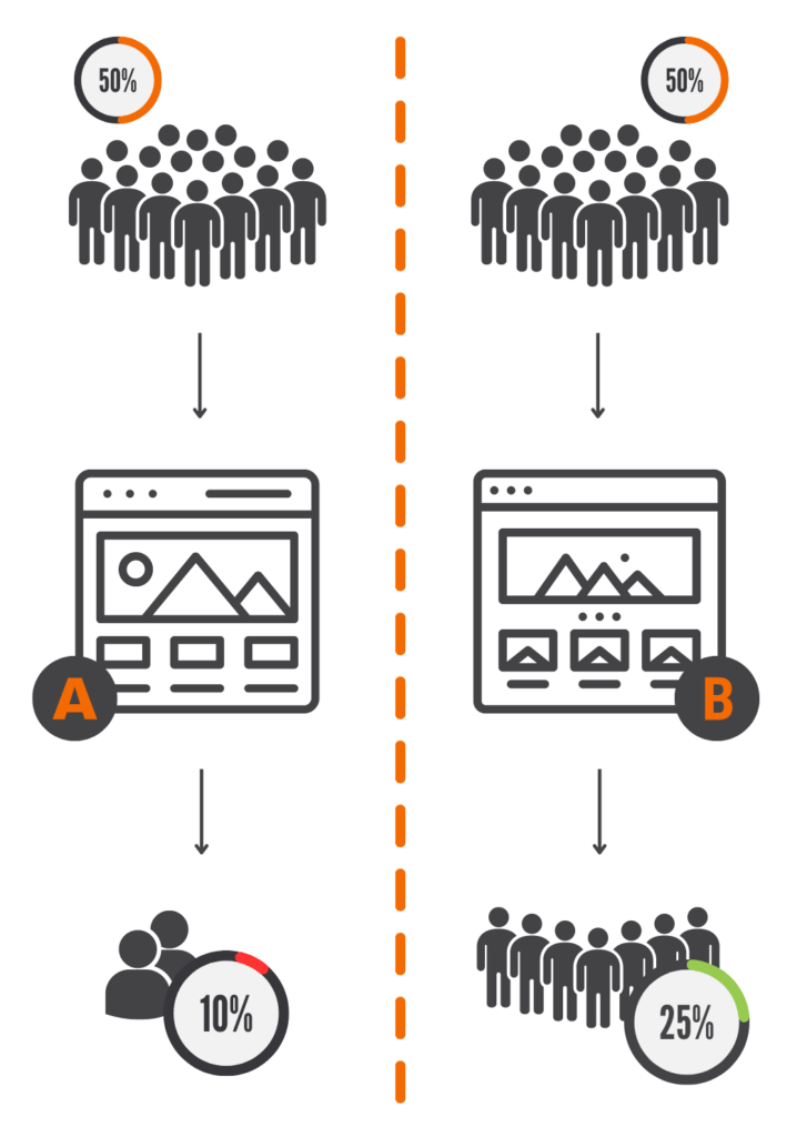 6. Teile den Traffic deiner Website gleichermaßen auf die verschiedenen Versionen deiner Landing Page(s) auf, um sicherzustellen, dass beide Varianten eine vergleichbare Anzahl an Besucher:innen erhalten.