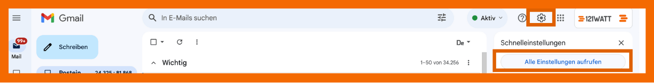 1. Rufe zunächste die Einstellungen über das Zahnrad auf und wähle “Alle Einstellungen aufrufen”