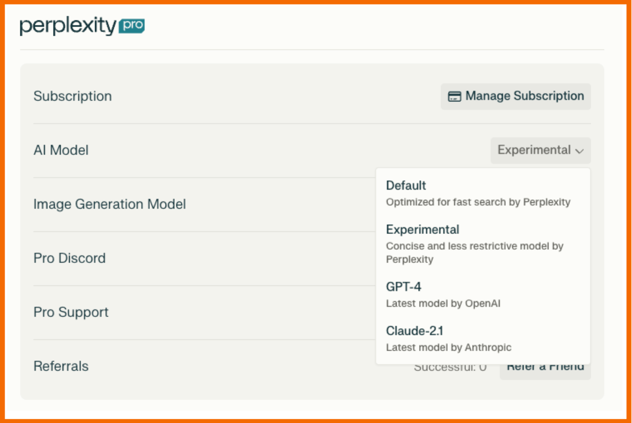 - Experimentelle Modelle: Neben den etablierten Modellen wie GPT-4 und Claude 2.1 bietet Perplexity Pro auch Zugang zu experimentellen Modellen, die für spezifische Anwendungsfälle oder innovative Ansätze in der Textverarbeitung optimiert sind. Um die experimentellen Modelle zu nutzen, gehe in die Einstellungen deines Perplexity Pro-Kontos und wähle das bevorzugte Modell aus, einschließlich der experimentellen Optionen. Diese Flexibilität ermöglicht es dir, die KI-Modelle je nach Bedarf anzupassen und zu wechseln, um die bestmöglichen Ergebnisse zu erzielen.