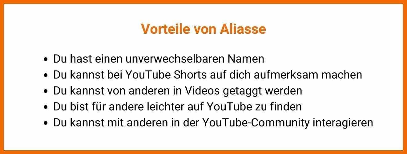 Seit Anfang November kannst du deinen Alias für YouTube reservieren. Damit führt YouTube eine neue Möglichkeit für Nutzer:innen ein, Creator:innen oder andere User:innen auf YouTube leichter zu finden und sich mit ihnen auszutauschen. Außerdem kannst du damit auch außerhalb von YouTube Werbung für deinen Kanal machen.