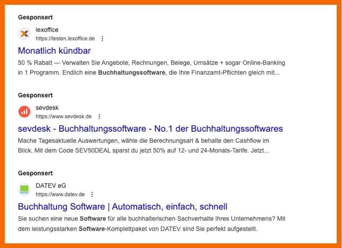 Stärkung der Markenbekanntheit: Auch wenn Nutzer:innen nicht auf die Anzeige klicken, nehmen sie deine Marke oder dein Unternehmen wahr. Durch regelmäßige Präsenz in den Suchergebnissen wird der Wiedererkennungswert gesteigert und Vertrauen aufgebaut. Gerade im B2B-Bereich mit oft langen Entscheidungsprozessen ist das wertvoll.