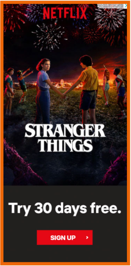 Netflix zeigt eindrucksvoll, wie man die Kraft eines ikonischen Produkts für Display-Werbung nutzen kann. Statt viele Botschaften oder visuelle Elemente zu kombinieren, setzt das Unternehmen auf ein sofort wiedererkennbares Bild aus einer seiner beliebtesten Serien. Dieses visuelle Storytelling zieht Fans sofort an und weckt zugleich die Neugier von Nutzer:innen, die die Serie noch nicht kennen.