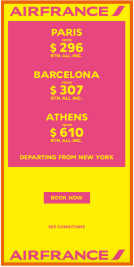 Beispiel: Air France – Farbstarke Werbung mit klarem Handlungsaufruf