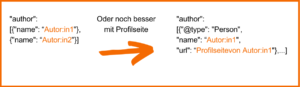 Wie du oben schon gelesen hast, kannst du über Markup den Seitentitel definieren. Darüber hinaus erwähnte Markus die neue Auszeichnungsmöglichkeit von Produkt-Vor- und Nachteilen, die dann direkt in deinen Suchergebnissen erscheinen (mehr dazu wieder bei Google) und erklärte, wie du mithilfe von Markup idealerweise zwei Autor:innen deines Artikels eingibst. Das sieht dann so aus:
