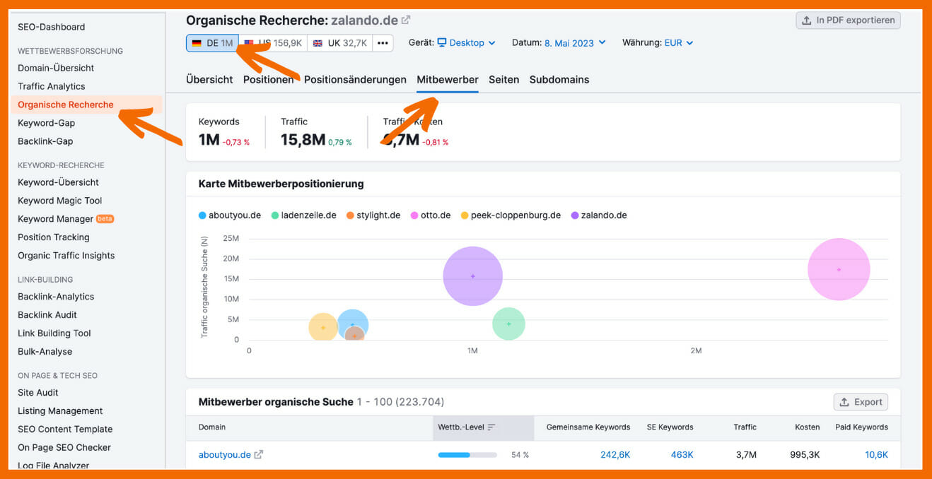 In 5 Schritten zur SEO-Wettbewerbsanalyse mit Semrush oder Sistrix