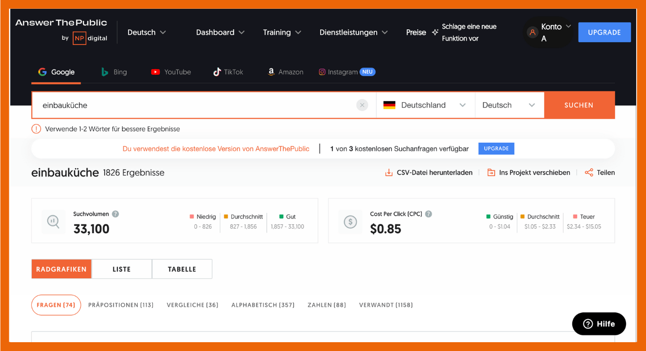 6) Answer The Public – Nutzerfragen als Keyword-Inspiration