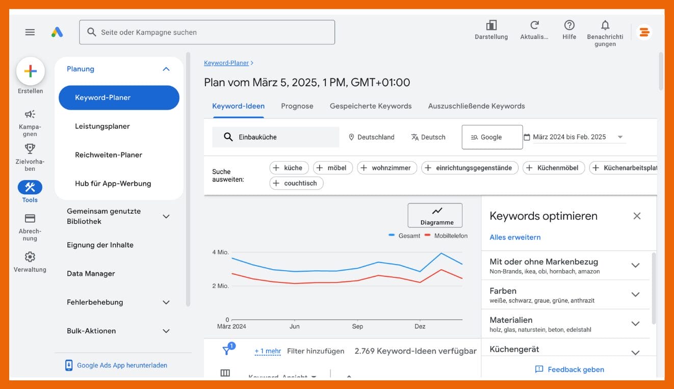 2) Google Keyword-Planer – Das Standard-Tool für die Keyword-Recherche