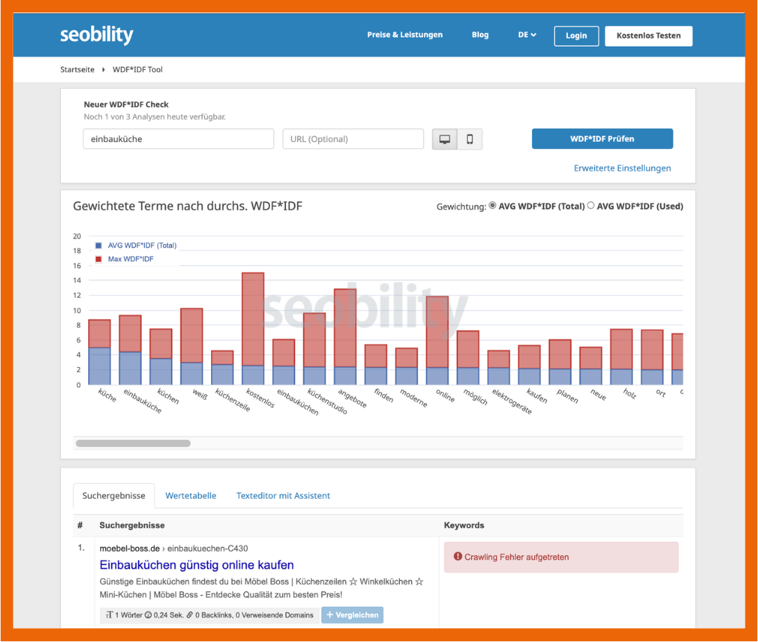 4) Seobilitys WDF*IDF-Tool – Optimierung durch Termgewichtung