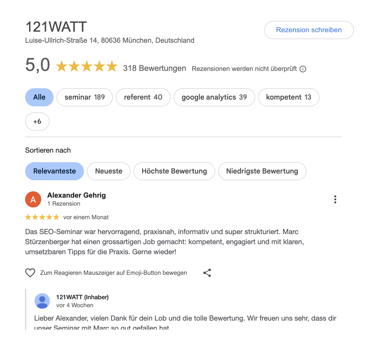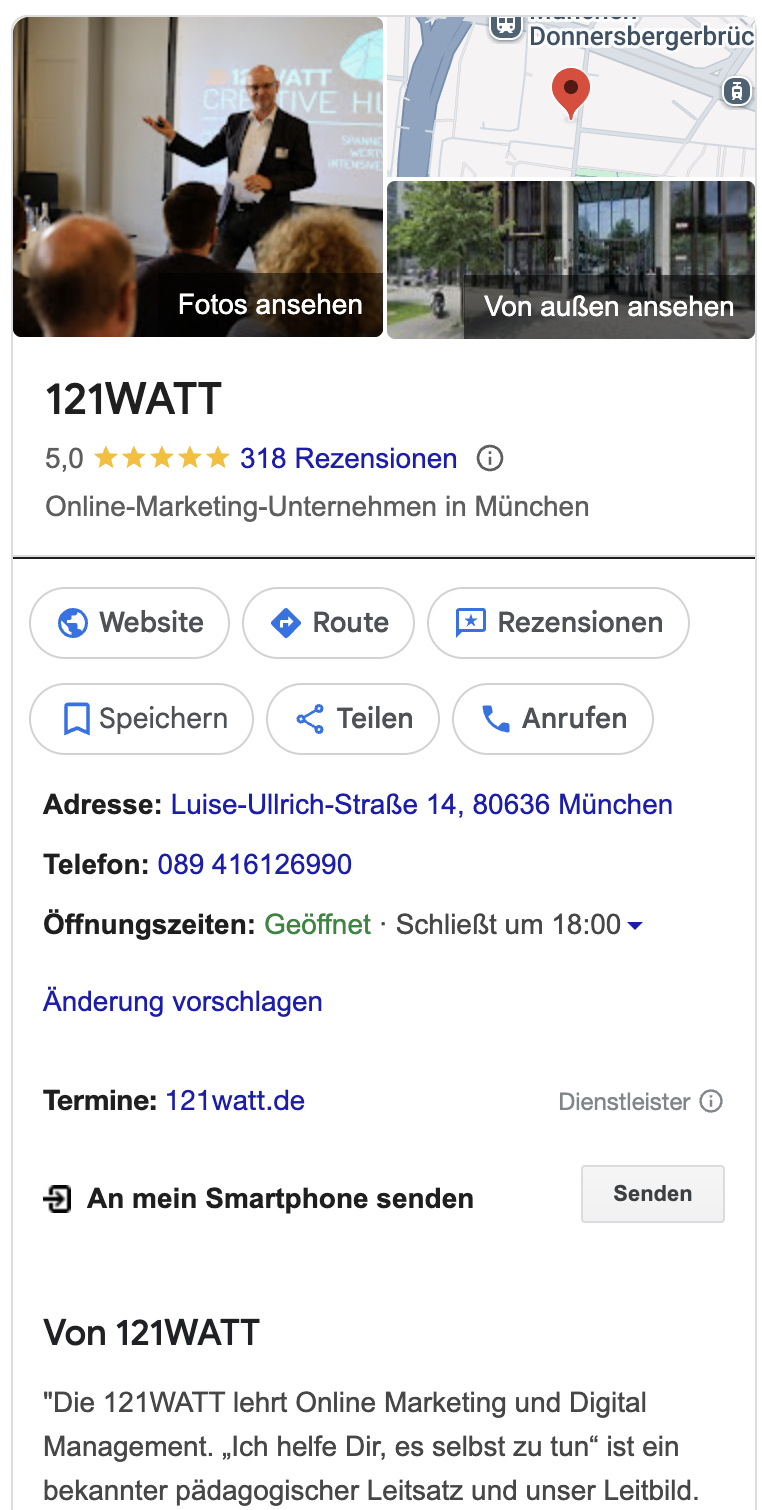 Google Bewertungen 121Watt