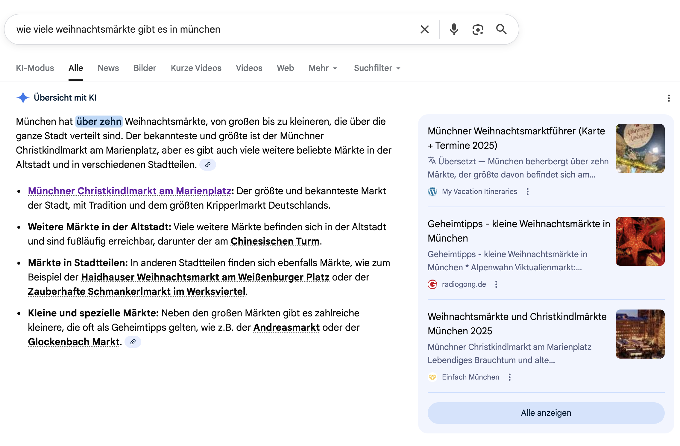 Die klassische organische Suche bekommt Konkurrenz: Immer häufiger liefert Google Antworten direkt innerhalb der Suchergebnisse. Dies wird durch KI-Funktionen wie „AI Mode“ oder „AI Overviews“ gesteuert. Diese Funktionen rücken besonders bei lokalen, kommerziellen Suchanfragen in den Fokus. Unternehmen, die ihre Inhalte und Profile entsprechend vorbereiten, sichern sich Sichtbarkeit an einer der prominentesten Stellen der Suchergebnisse.