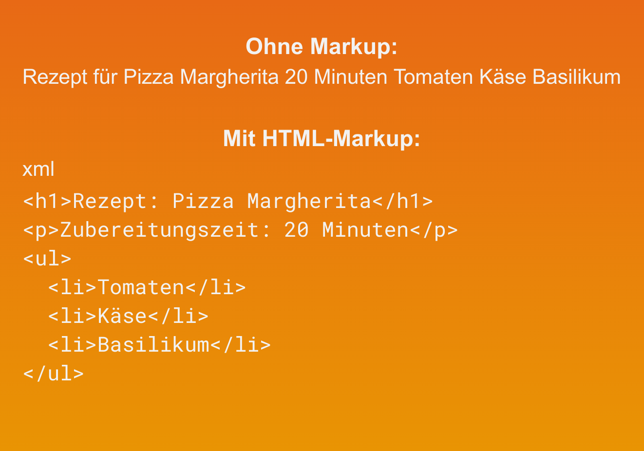 Gerade für SEO ist dieser Unterschied wichtig: Markup sorgt dafür, dass Suchmaschinen Inhalte verstehen und korrekt einordnen können.