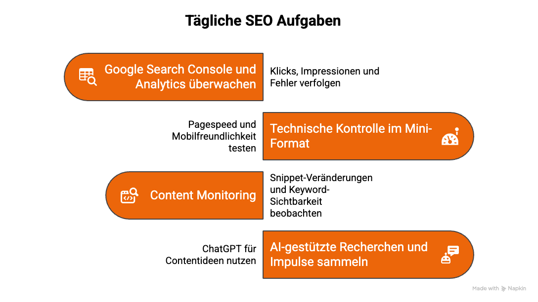 Tägliche Aufgaben sichern die Betriebsfähigkeit deiner Website, decken Probleme schnell auf und schaffen Raum für kleine Optimierungen.
