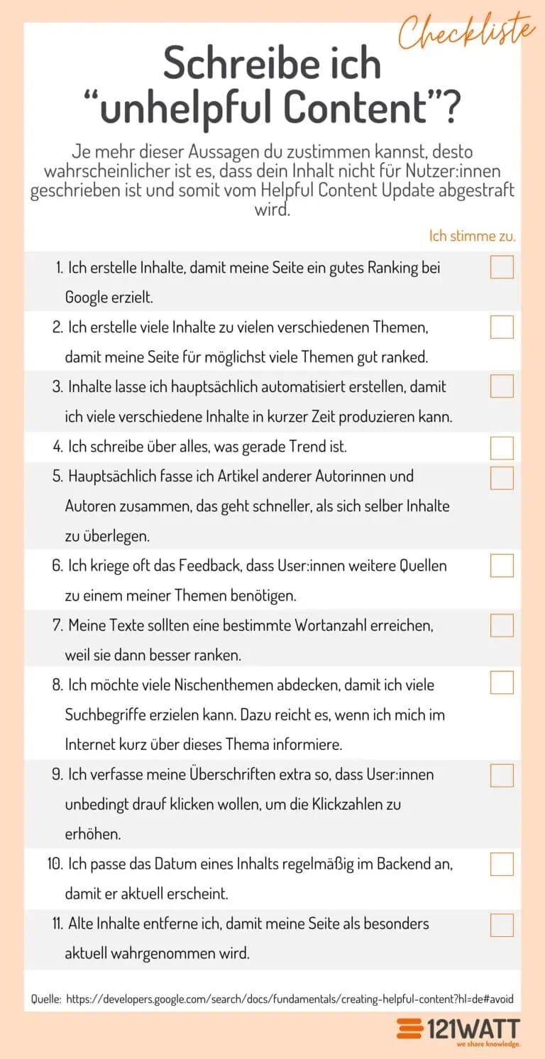 Schreibe ich Unhelpful Content? Quelle: 121WATT Artikel