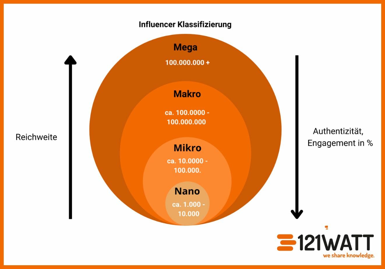 Damit du ein besseres Verständnis dafür bekommst, wo Micro- und Macro-Influencer:innen im Influencer-Marketing einzuordnen sind, hier ein Überblick über die verschiedenen Influencer-Typen: