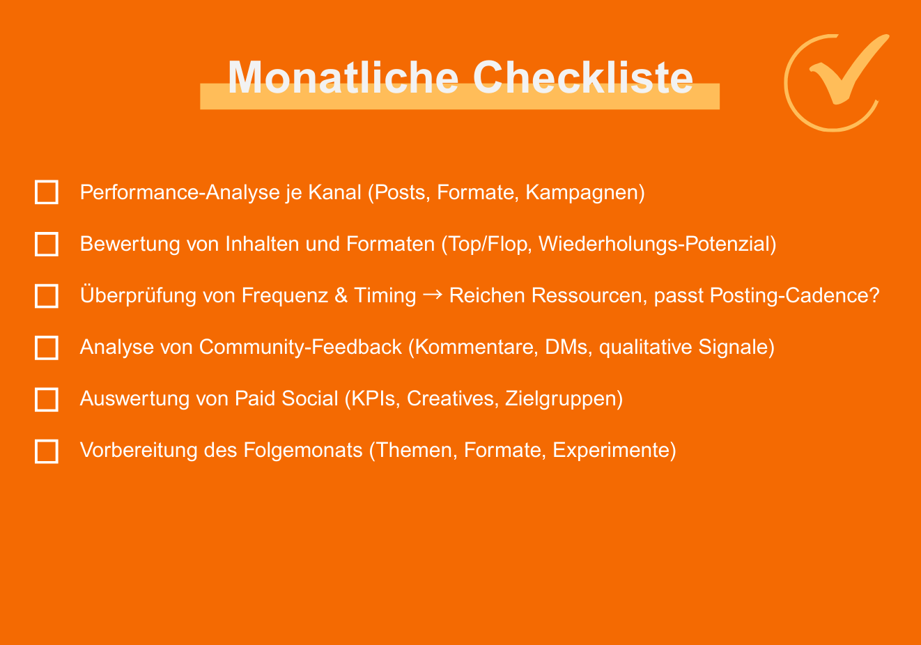 • Monatliche Analysen ermöglichen datenbasierte Optimierung und Social-Search-Feintuning.