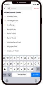Auch über die Suche (Screenshot 3) lassen sich Trends erkennen. Noch bevor du etwas eintippst, schlägt TikTok dir beliebte Suchanfragen vor, von denen aus du auf unterschiedliche Trends schließen kannst.