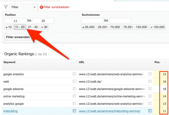 Jeder, der sich ein bisschen mit SEO beschäftigt, weiß, dass Nutzer fast ausschließlich dann auf eine Website kommen, wenn sie in den SERPs auf Seite 1 liegt. Auf Seite 2 und dahinter klickt kaum noch ein Suchender. Jede Website hat mindestens ein paar Low-Hanging-Fruits, also Seiten, die auf der zweiten Suchergebnisseite stehen. Mit wenig Aufwand können diese Low-Hanging-Fruits auf die erste Seite gehievt werden.