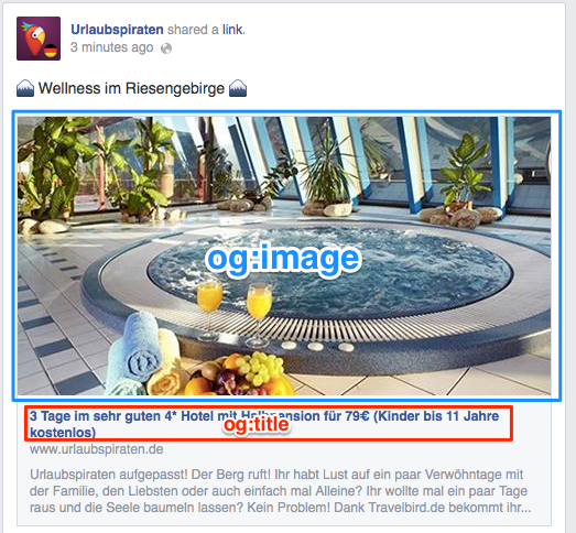 Open Graph Tags sorgen (ähnlich wie Title und Meta-Description in den Google-Suchergebnissen) für eine verbesserte Darstellung der Vorschau einer Seite, die über Facebook geteilt werden soll.
