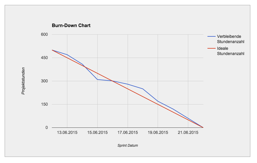 Priorisierung: Durch die Vergabe von Punkten oder Stundenzeiten kristallisieren sich schnell die wichtigen und weniger wichtigen Aufgaben heraus. Burndown Charts stellen graphisch dar, welche Aufgaben schon vollendet sind und welche noch erledigt werden müssen.