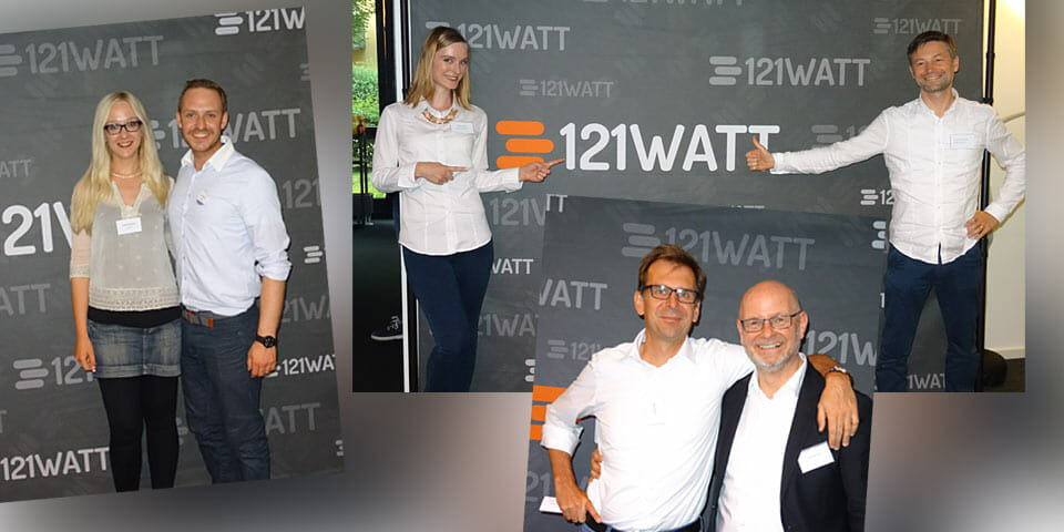 Nach Alexander Holls Vortrag gab es eine viertel stündige Pause, in der wir ein paar tolle Fotos vor der 121WATT Fotowand schießen konnten. Hier eine kleine Auswahl: