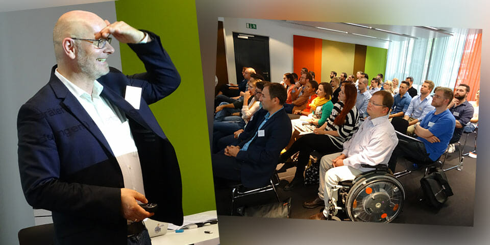 1. Matthias Weth, Geschäftsführer von Catbird Seat, hielt als erster seinen Vortrag zum Thema: „Wie Mobilität die digitale Geschäftswelt verändert“.