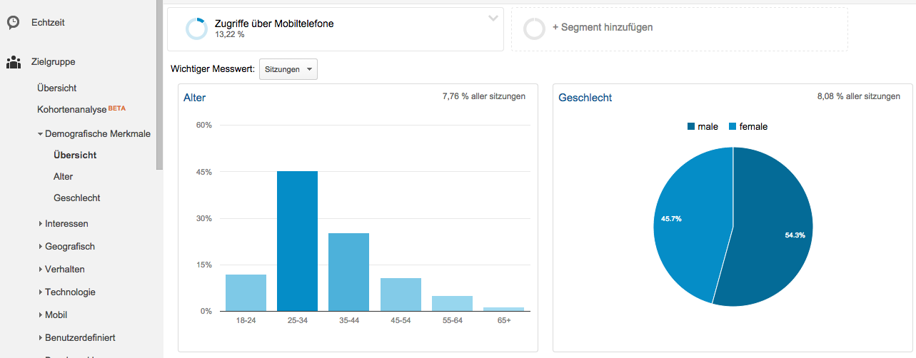 Mobile Zugriffe in google Analytics - Demographische Daten (Alter und Geschlecht)